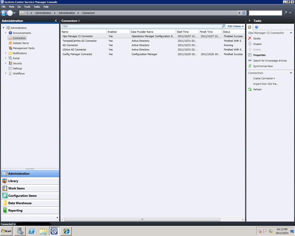 16. If you got the error mentioned above, restart System Center Data Access Service, System Center Management and System Center Management Configuration Services