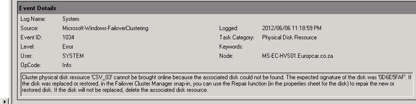 So, we began to investigate as all the Technet articles state that the drive is corrupted and Disk Signatures need to be changed, however we have had no major changes in the last little while. We were also able to view to CSV Volume from our SAN management tools. So, we were confused. The disk just would not come online.