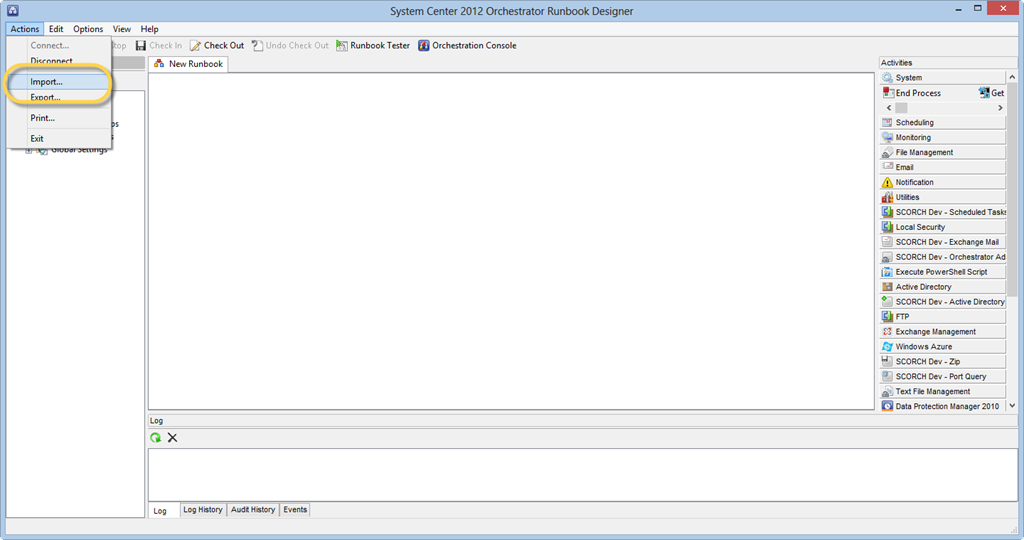 NB!!!! Please note that is NOT a replacement for a backup, having a proper backup plan is crucial to any environment. Once my SCORCH server was back up and running, I immediately implemented a proper backup procedure using Microsoft System Center Data Protection Manager in addition to the backup of Runbooks. I am currently working on a Runbook to backup my Runbooks, more to follow on that soon. To achieve this goal, I will be using an Orchestrator Codeplex runbook.