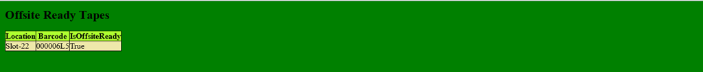 $offistereadytape | Select-object location, barcode , isoffsiteready|ConvertTo-Html -Head $a -Body "<H2>Offsite Ready Tapes</H2>" | out-file -FilePath $filepath