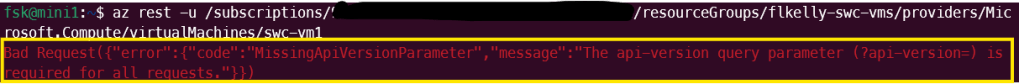 Ok, so down to business, the tool/command that I am using is “az rest”. Using this tool is quite easy but thanks to some additional insights from a colleague in my team you can make it even easier. So, how do we use the command. Let’s say we wanted to make the following request – Virtual Machines – List.